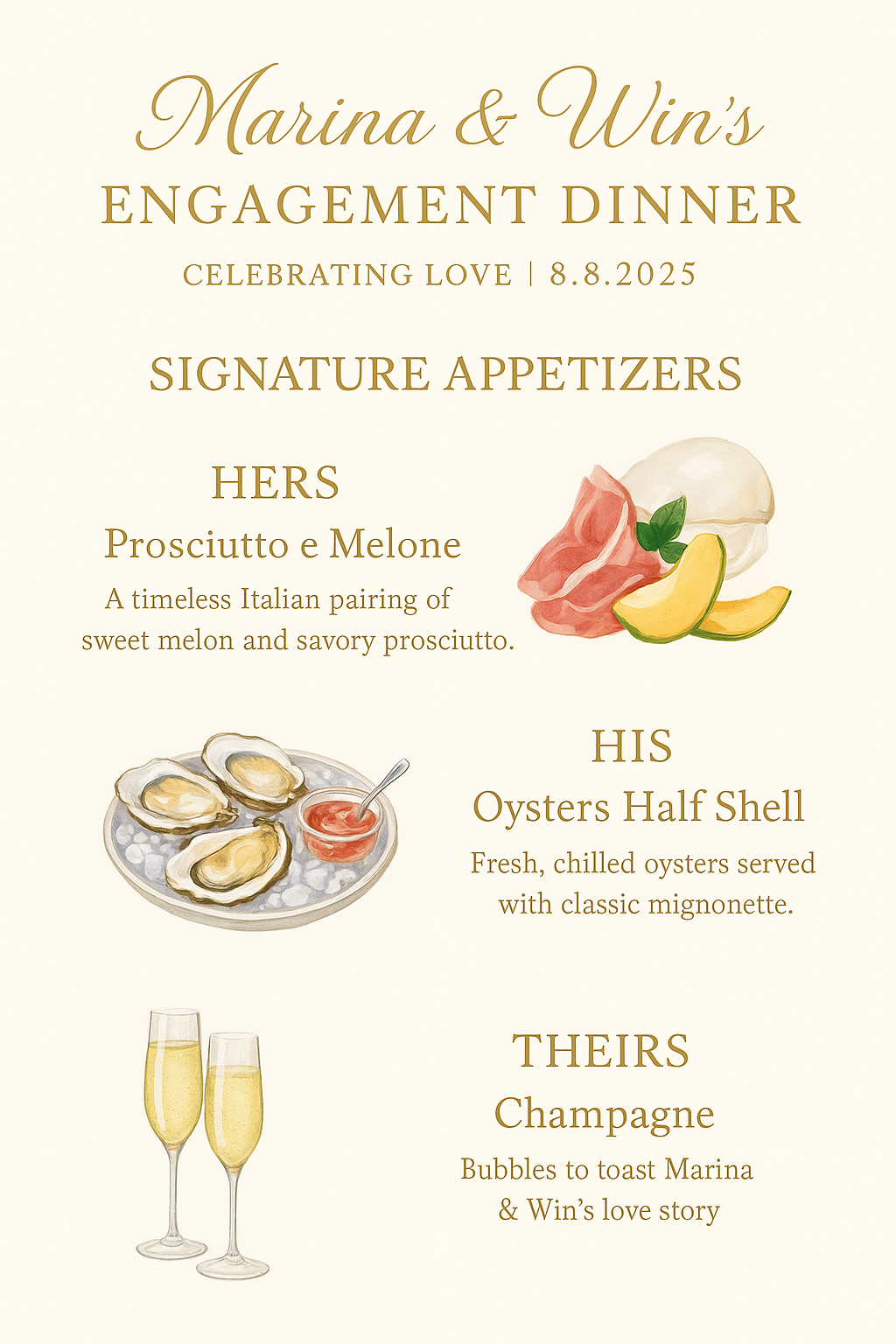 Whether you need a simple, elegant menu or a full event aesthetic, I customize every detail to match your theme, colors, and style.